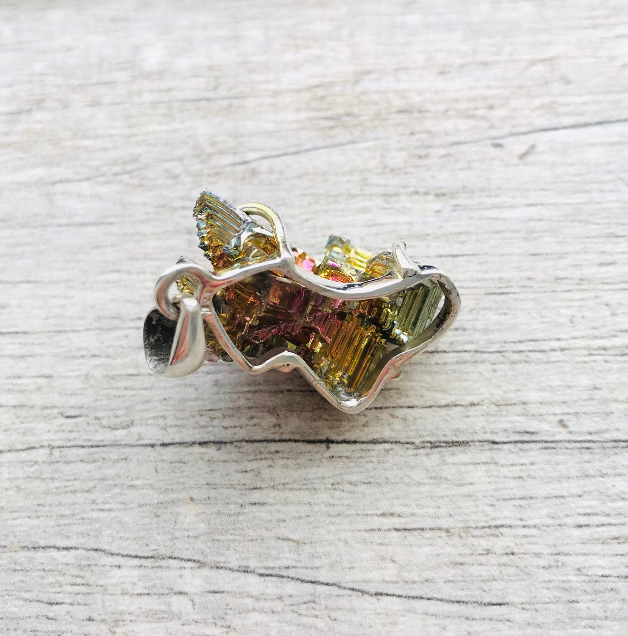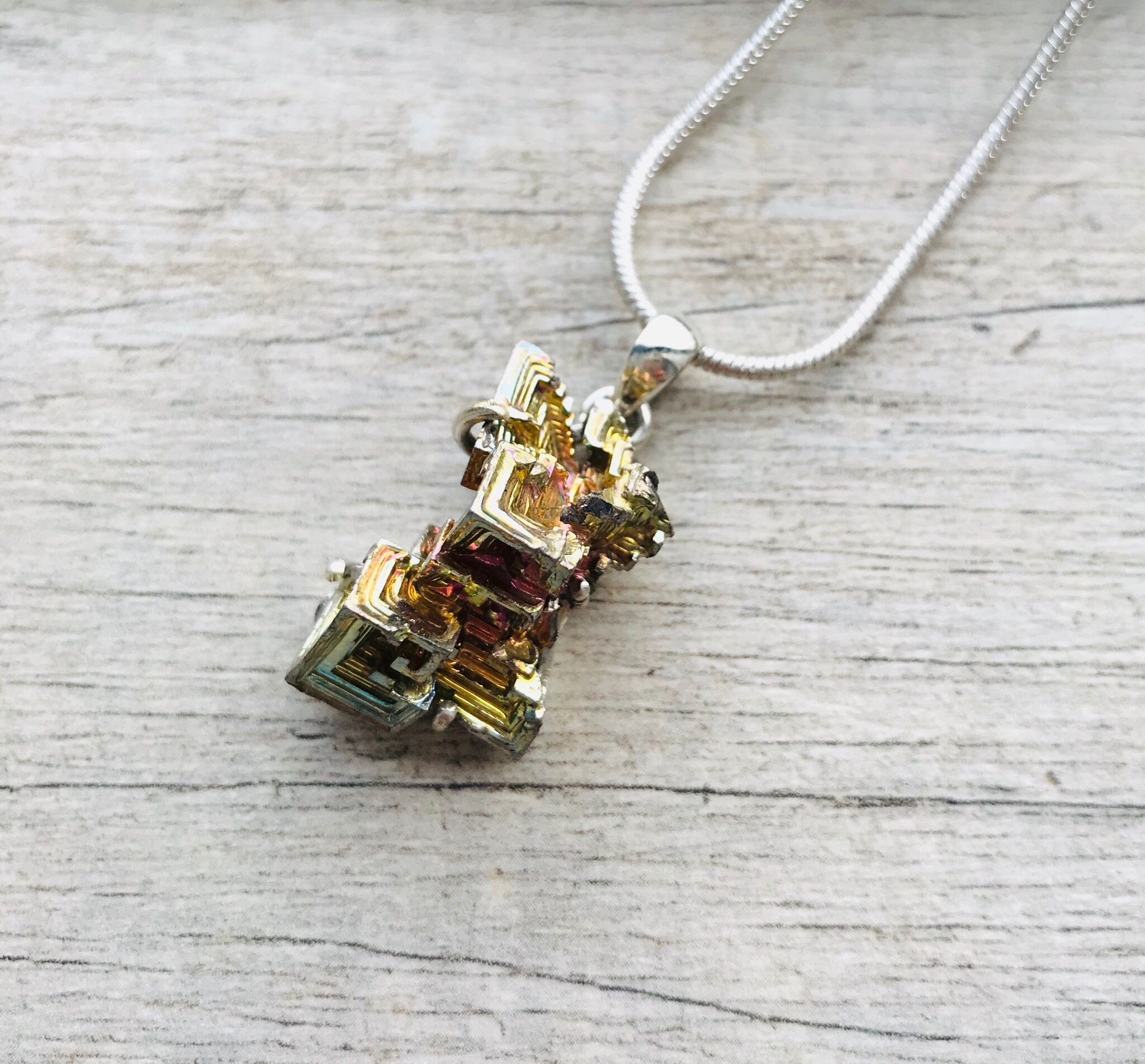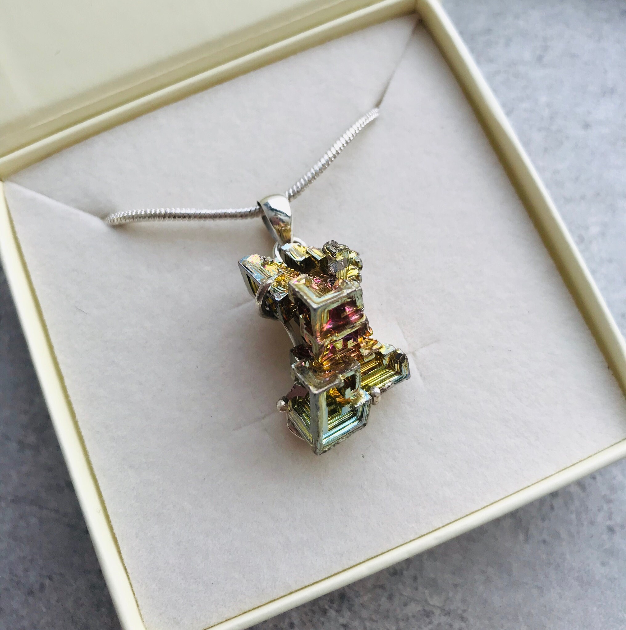 Made with high quality Bismuth Crystalline Metal approximately 28mm x 15mm in genuine 925 Sterling Silver stamped. Total length of the pendant is approximately 1.25 inch (35mm).