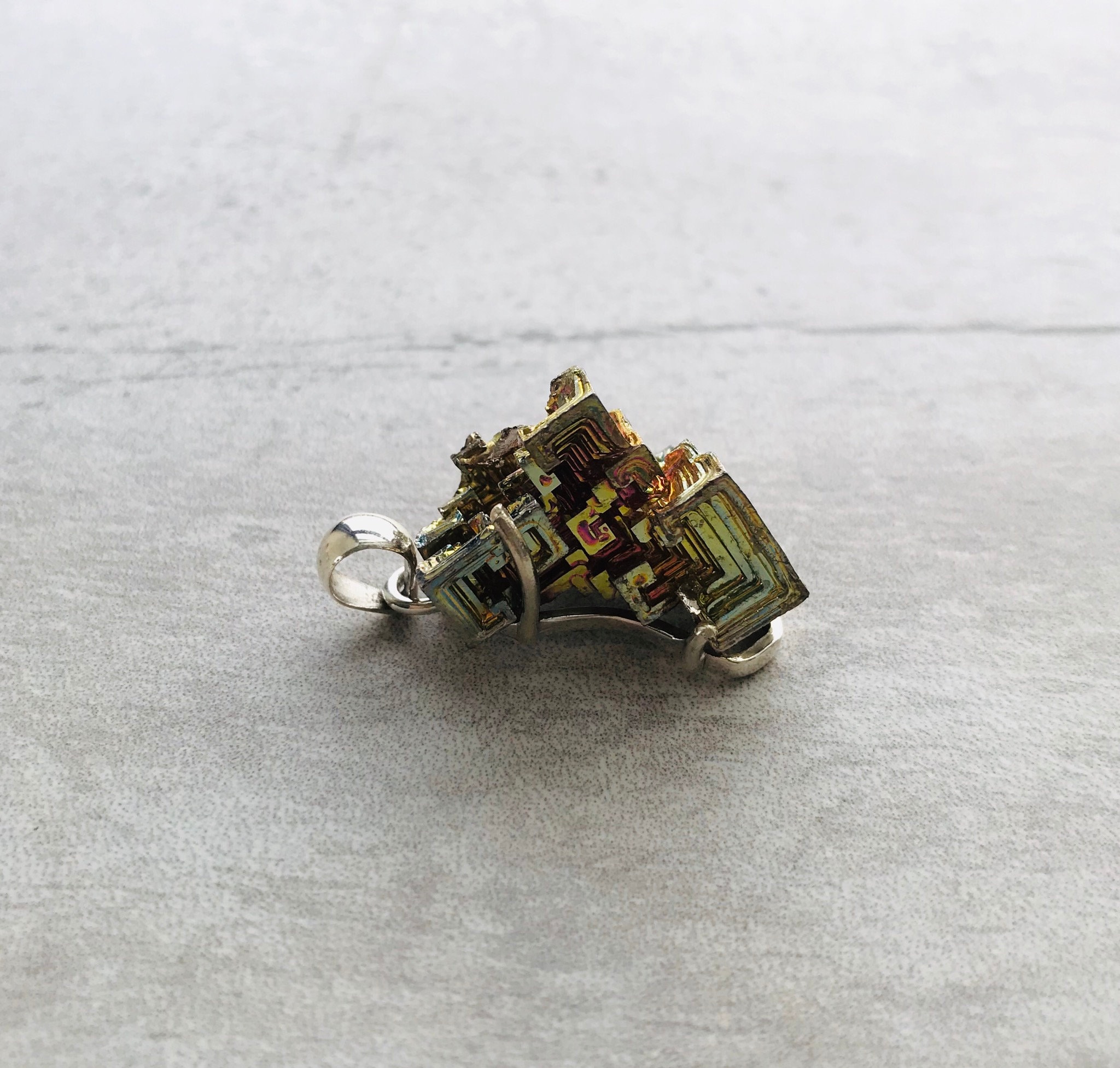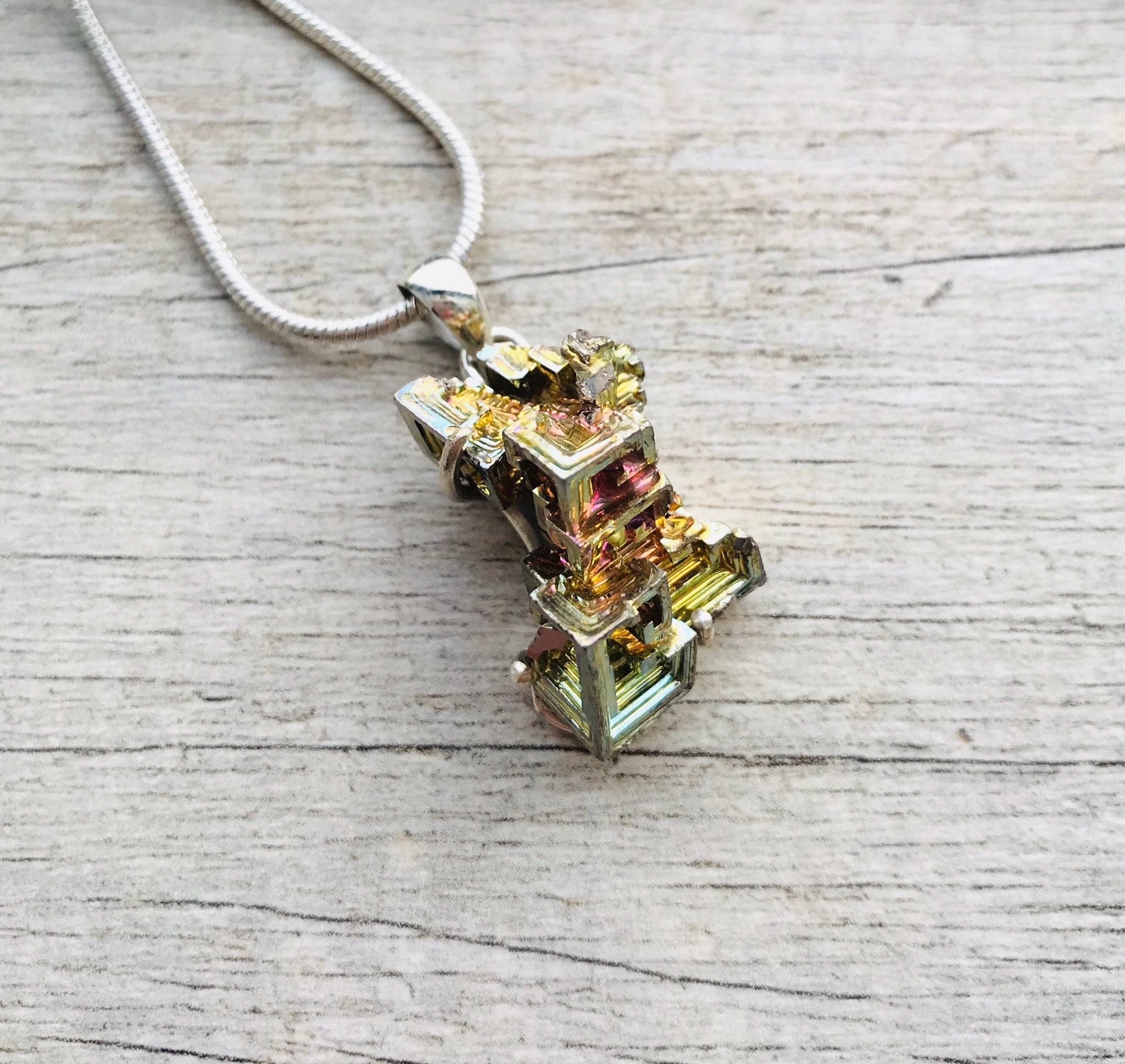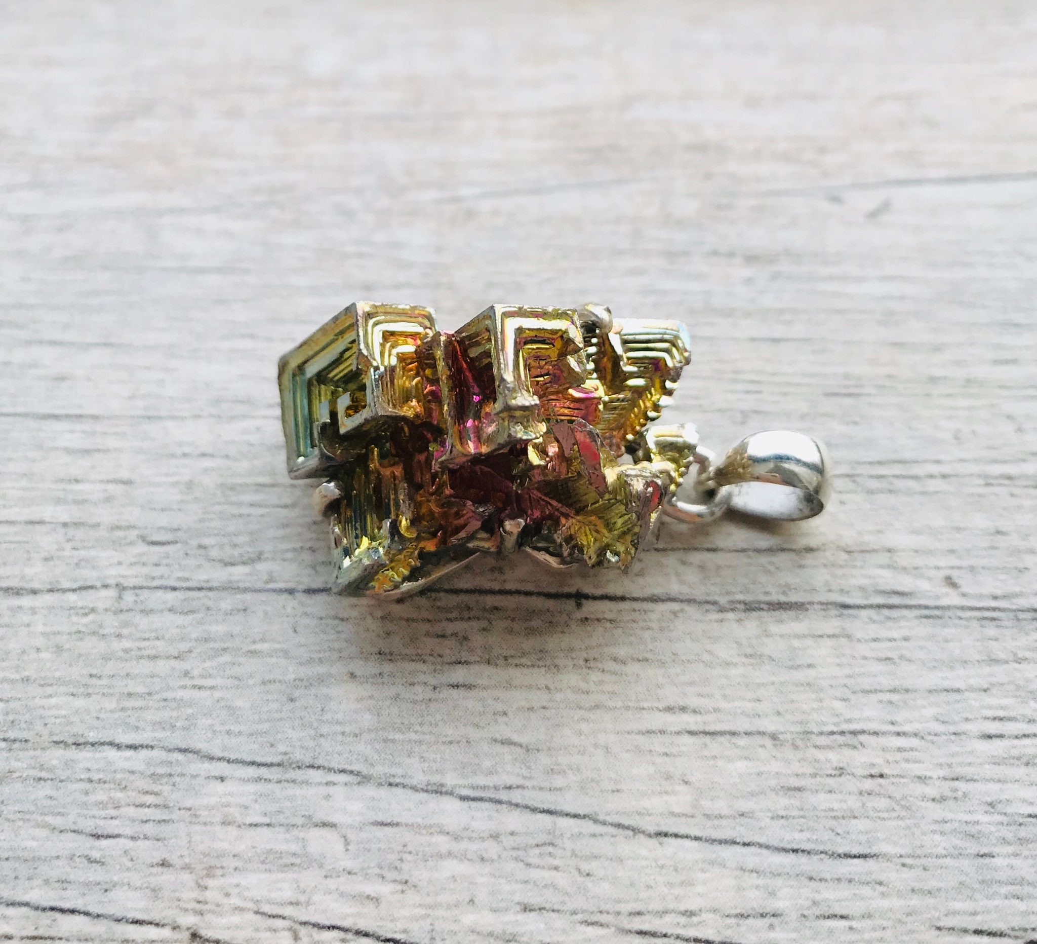 Made with high quality Bismuth Crystalline Metal approximately 28mm x 15mm in genuine 925 Sterling Silver stamped. Total length of the pendant is approximately 1.25 inch (35mm).