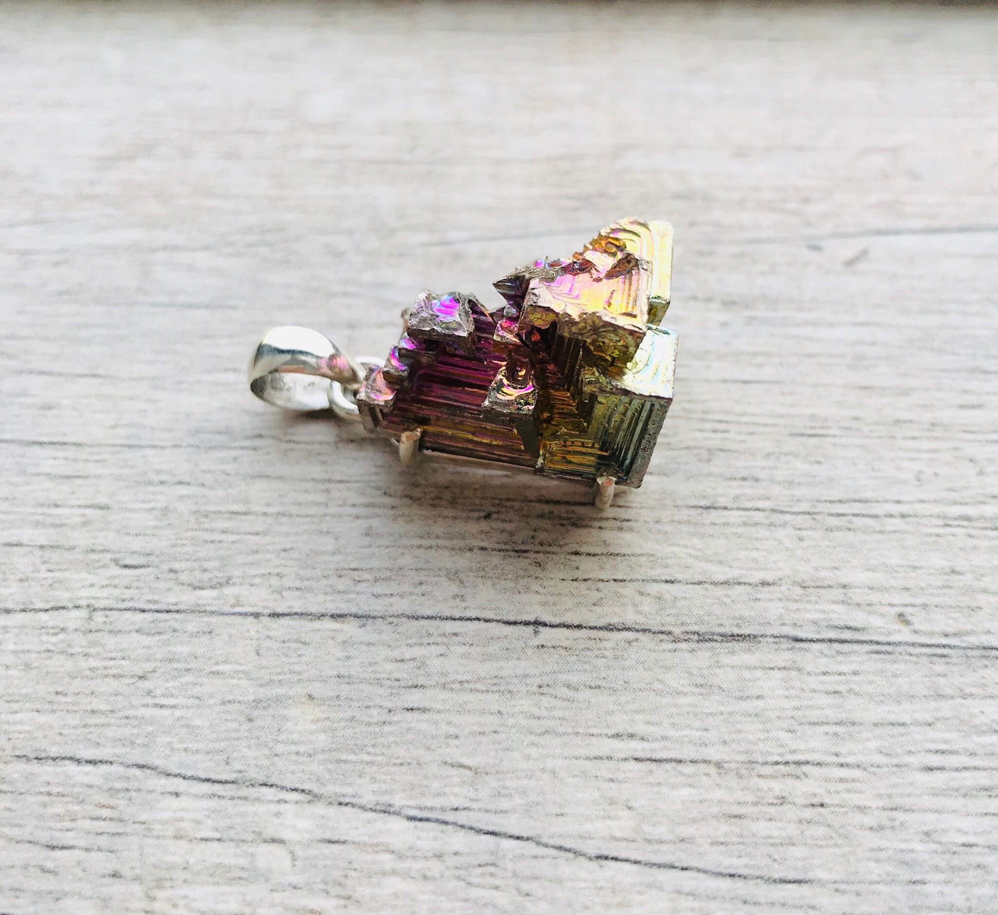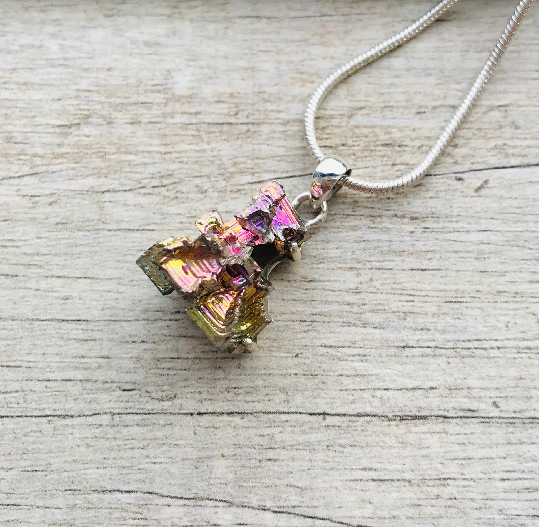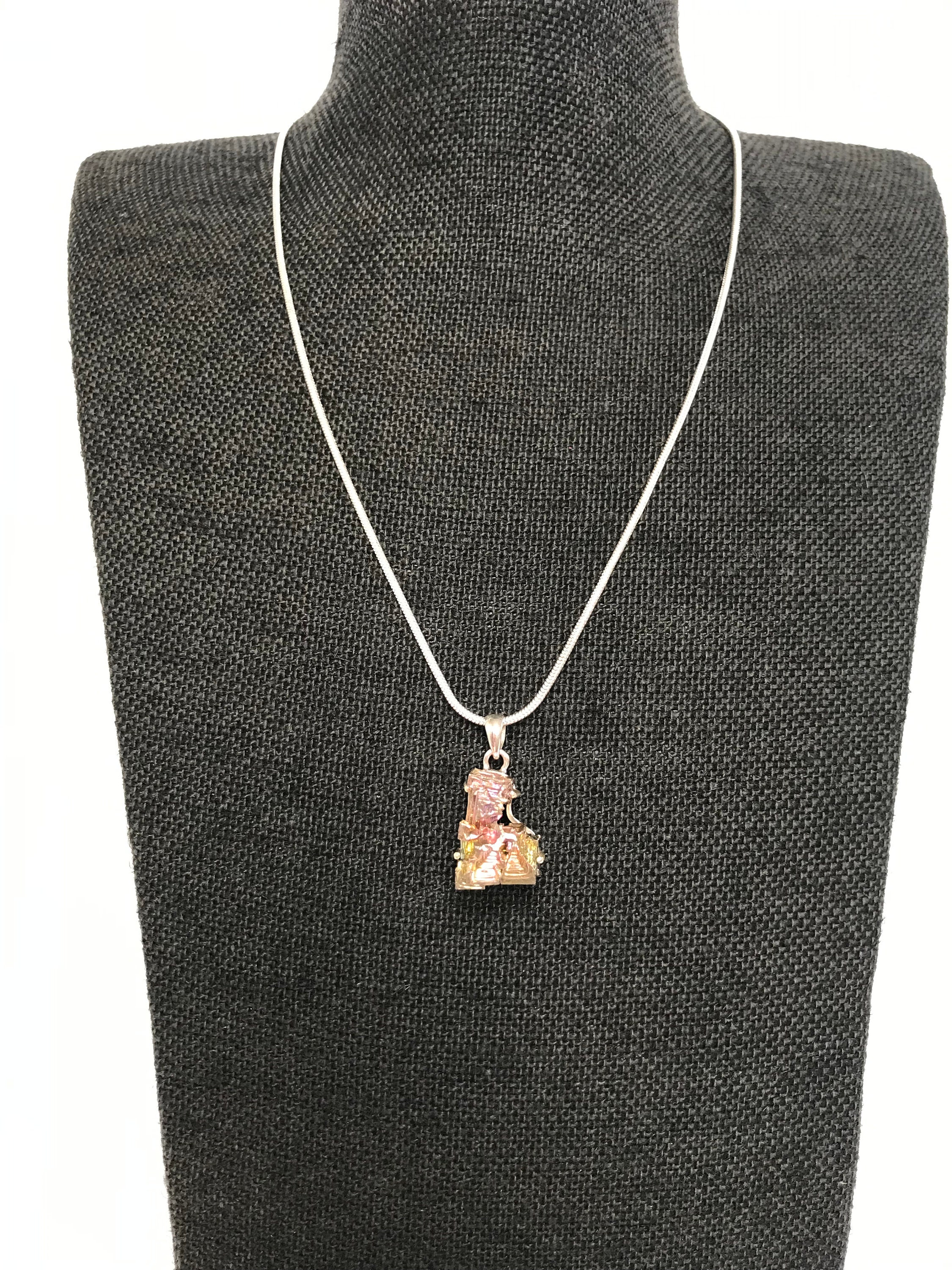 Made with high quality Bismuth Crystalline Metal approximately 20mm x 18mm in genuine 925 Sterling Silver stamped. Total length of the pendant is approximately 1 inch (30mm).