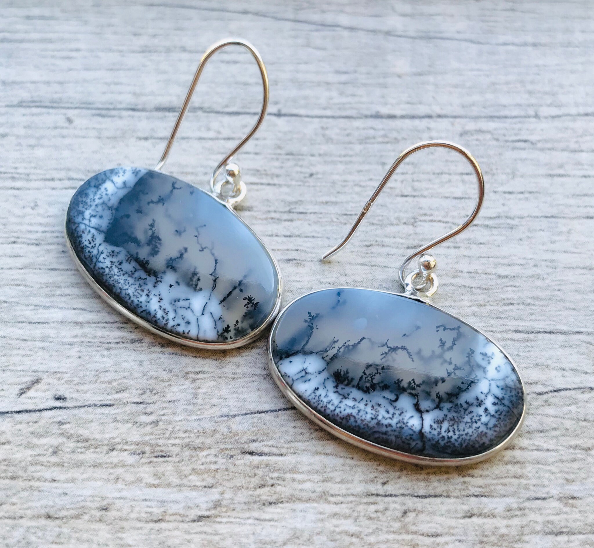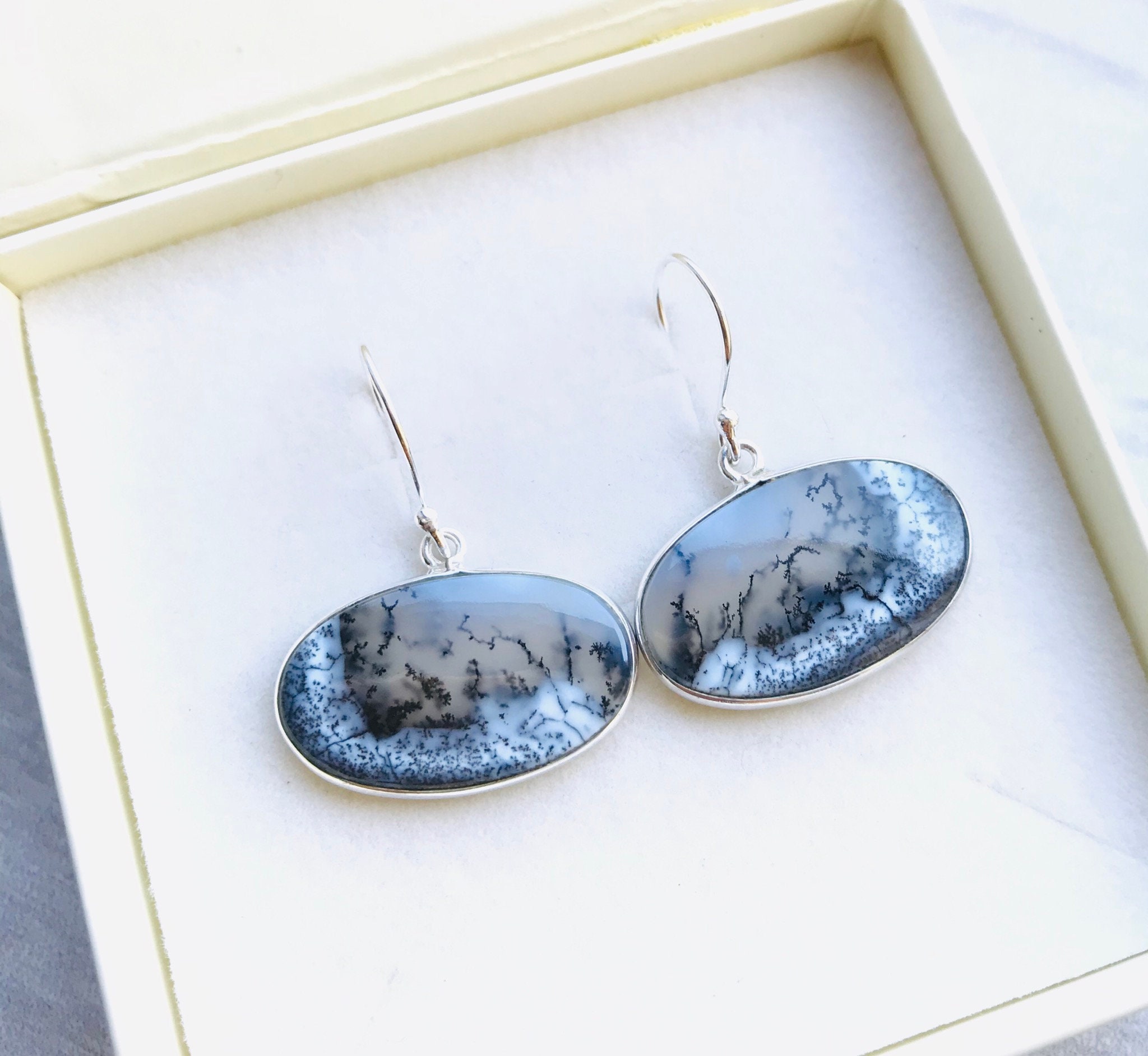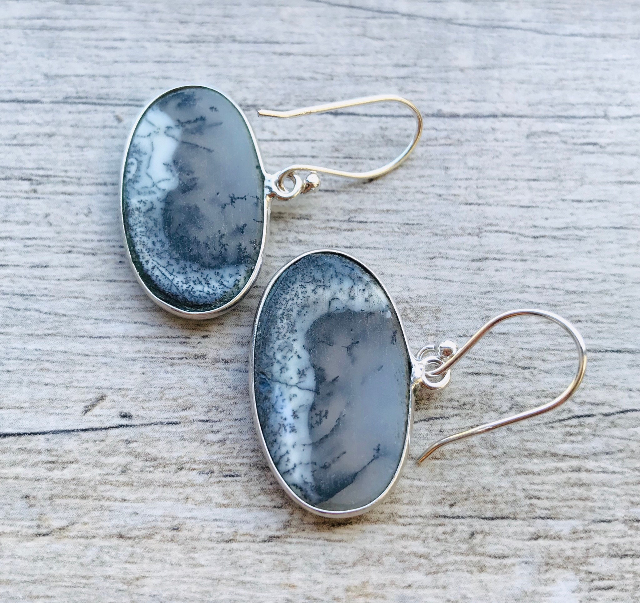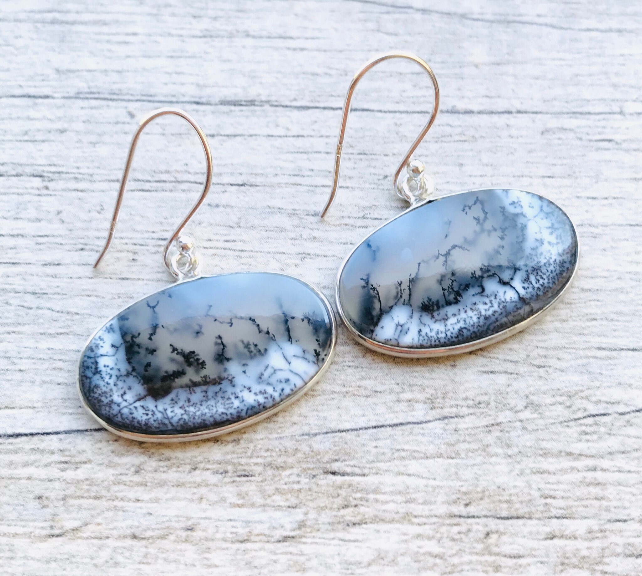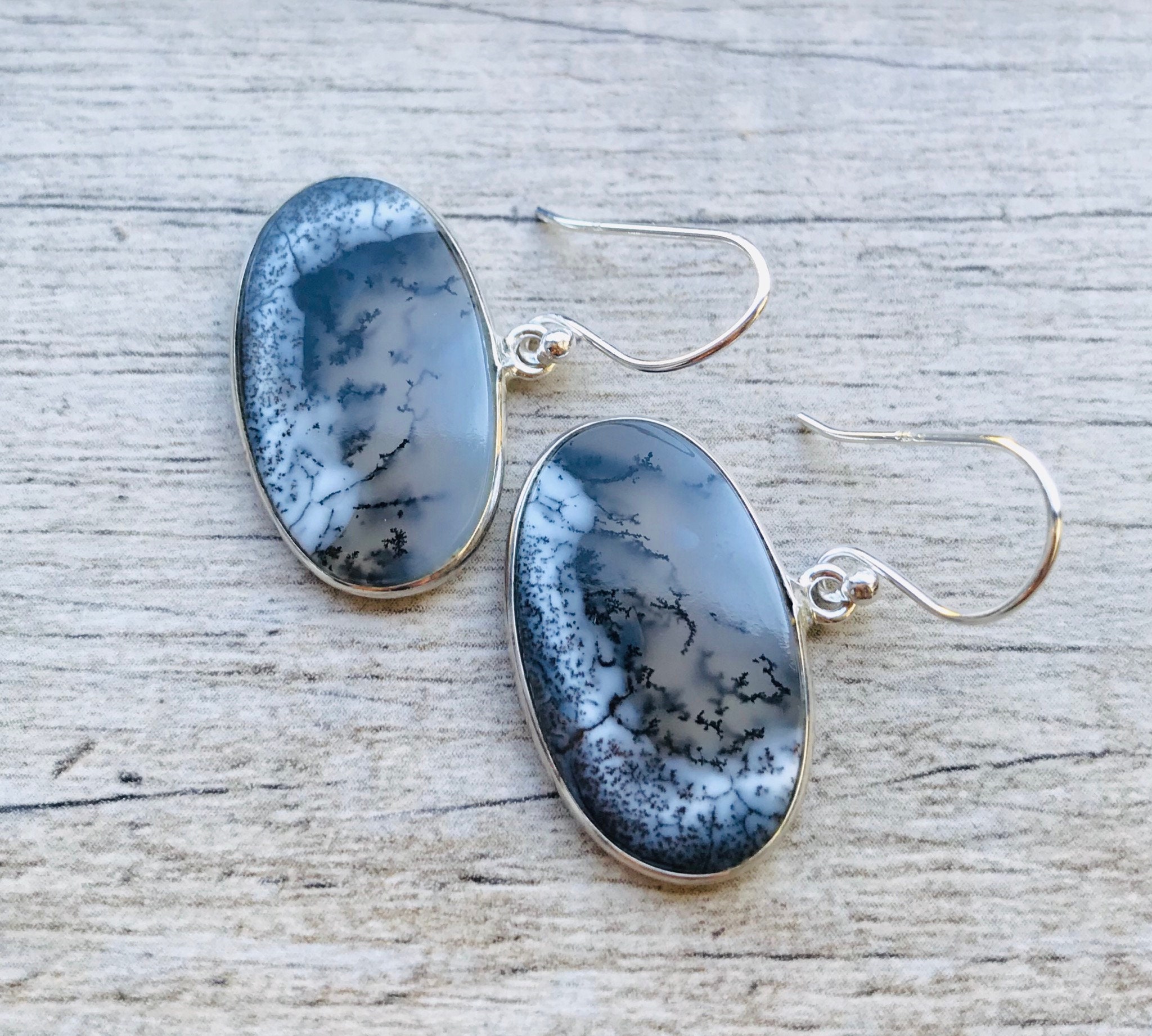 Made with high quality genuine natural polished Merlinite (15mm x 25mm) in genuine 925 Sterling Silver stamped. Total length of the earrings including hooks is approximately 1.25 inches (30mm).