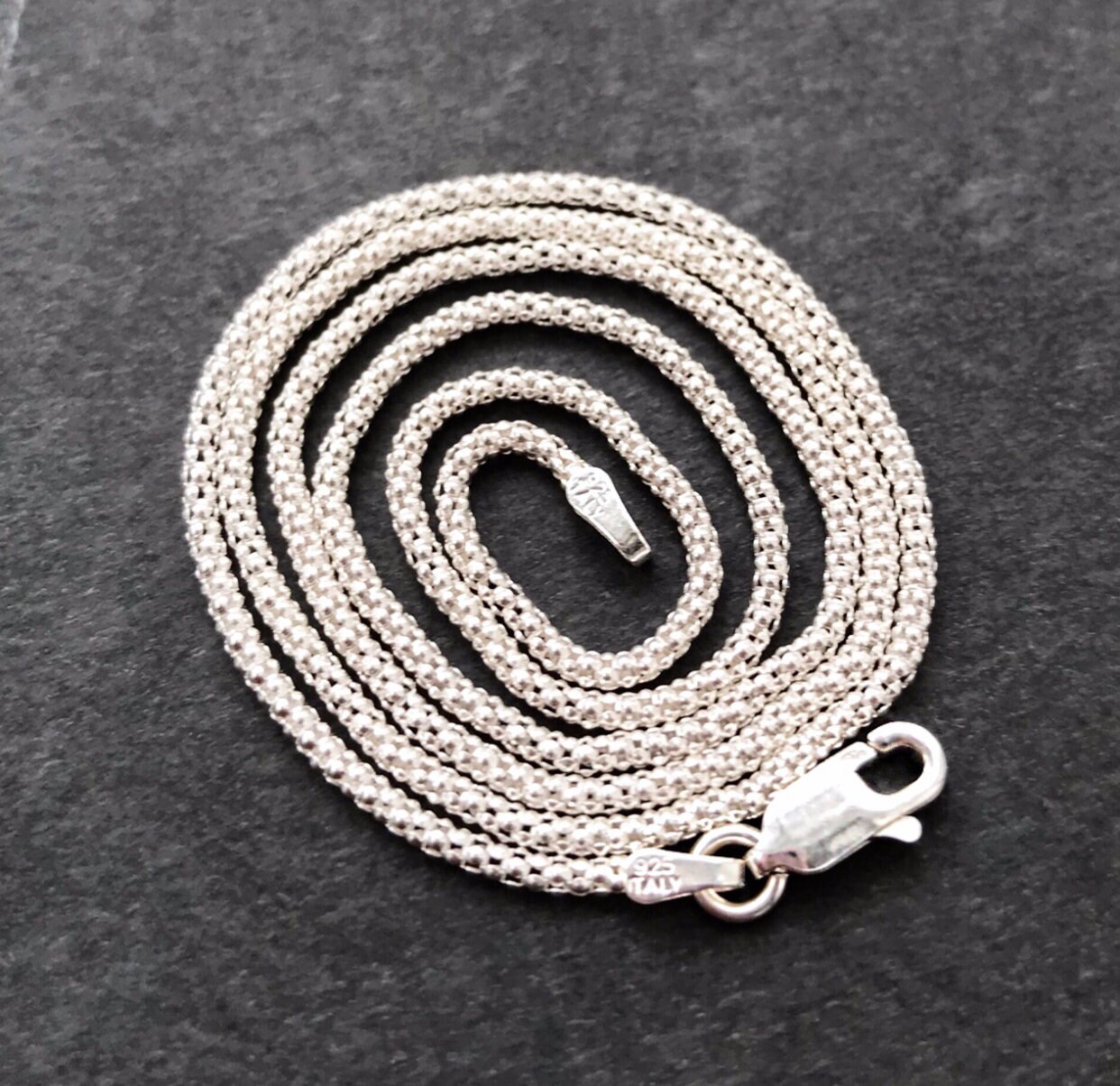 You can choose to buy a pendant only or with sterling silver popcorn chain which is 2mm thick and has a lobster claw closure. Chains are available in 16", 18", 20", 22", and 24" lengths.